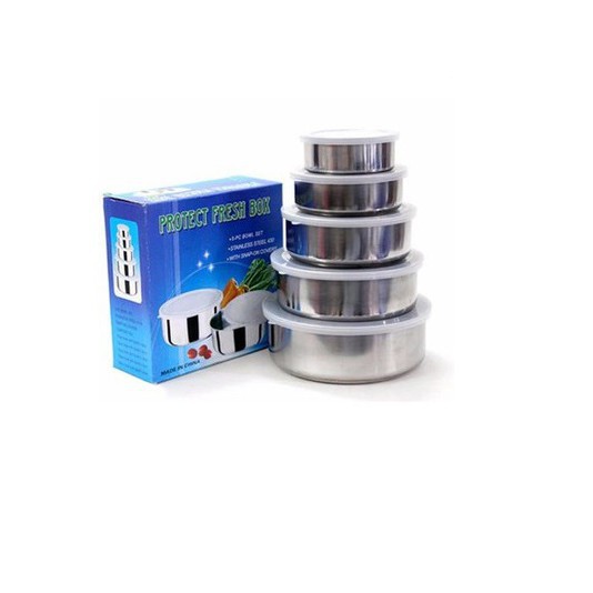 ✧ Bộ 5 bát inox cao cấp có nắp đậy với thiết kế thông minh với bát được làm bằng chất liệu inox không rỉ đặc biệt an toàn đẹp sáng bóng.