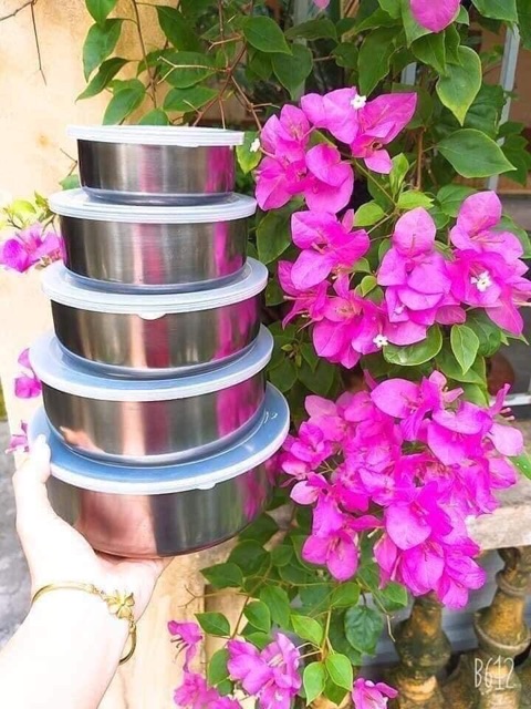 Nhà cửa & Đời sống > Bộ đồ bàn ăn > Tô || Bộ 5 bát inox có nắp đạy tiện dụngCòn hàng