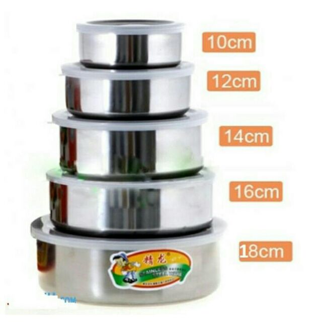 Bộ 5 bát inox cao cấp có nắp đậy với thiết kế thông minh vói bát được làm bằng chất liệu inox không rỉ đặc biệt an toàn đẹp sáng bóng.Sản phẩm bao gồm 5 thố với đường kính lần lượt là 10cm, 12cm, 14cm, 16cm và 18cm cho bạn thoải mái đựng các loại thực phẩm cần thiết để cất vào trong tủ lạnh và dễ dàng tìm kiếm khi cần dùngBộ sản phẩm 5 bát inox có nắp hút chân không với thiết kế thông minh gồm 5 chiếc bát với các kích thước khác nhau phù hợp để đựng từng loại đồ ăn một cách gọn gàng tiết kiệm diện tích.Sản phẩm giúp bạn có thể đựng bảo quản đồ ăn một cách vệ sinh và an toàn tránh khỏi những vi khuẩn gây hại
