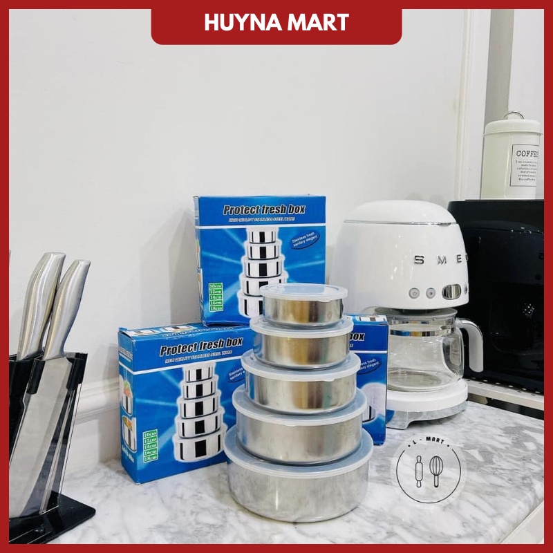 Bộ 5 Bát INOX Lạnh Đựng Thực Phẩm Kèm Nắp Đậy Silicon Cao Cấp