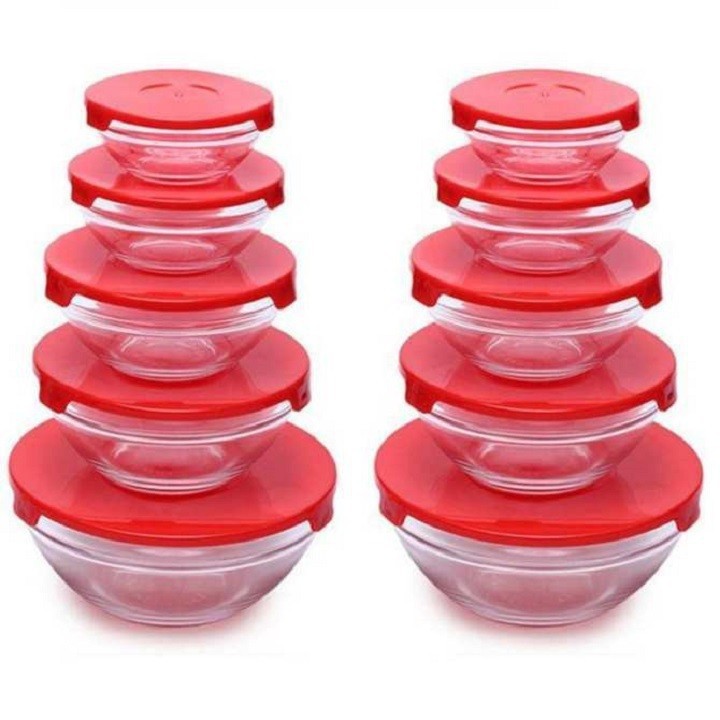 Bộ 5 Bát Thủy Tinh Trơn Cường Lực Chịu Nhiệt Tốt Có Nắp Đậy Nhựa Tiện Dụng- Bộ 5 bát thủy tinh có nắp đậy, giúp bạn bảo quản thức ăn một cách tốt nhất. Sản phẩm được làm bằng thủy tinh chất lượng cao, chịu nhiệt tốt, an toàn với các loại thức ăn nóng lạnh và không ảnh hưởng đến sức khỏe người sử dụng.