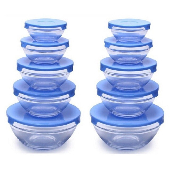 Bộ 5 (Bát) Thố Thủy Tinh Nắp Nhựa Cao cấp Cường Lực Chịu Nhiệt Tốt Có Nắp Đậy Nhựa Tiện Dụng (giao màu ngẫu nhiên)