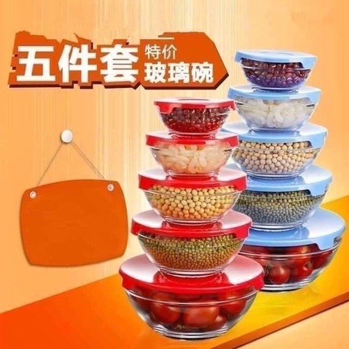 Nhà cửa & Đời sống > Bộ đồ bàn ăn > Tô || Bộ 5 bát thuỷ tinh cao cấp có nắp đậyCòn hàng