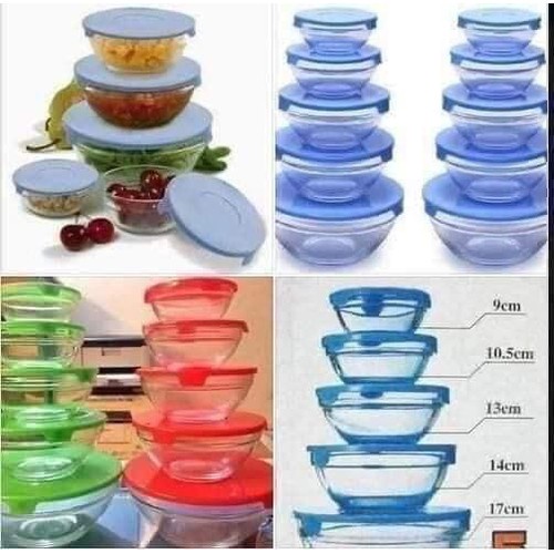 Bộ 5 bát thuỷ tinh là sản phẩm được người tiêu dùng lựa chọn nhiều.Chất liệu thuỷ tinh trong đựng thức ăn rất sạch và vệ sinh.