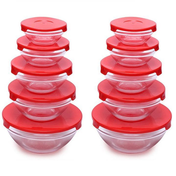Nhà cửa & Đời sống > Bộ đồ bàn ăn > Tô || Bộ 5 bát thủy tinh cao cấp có nắp đậyCòn hàng