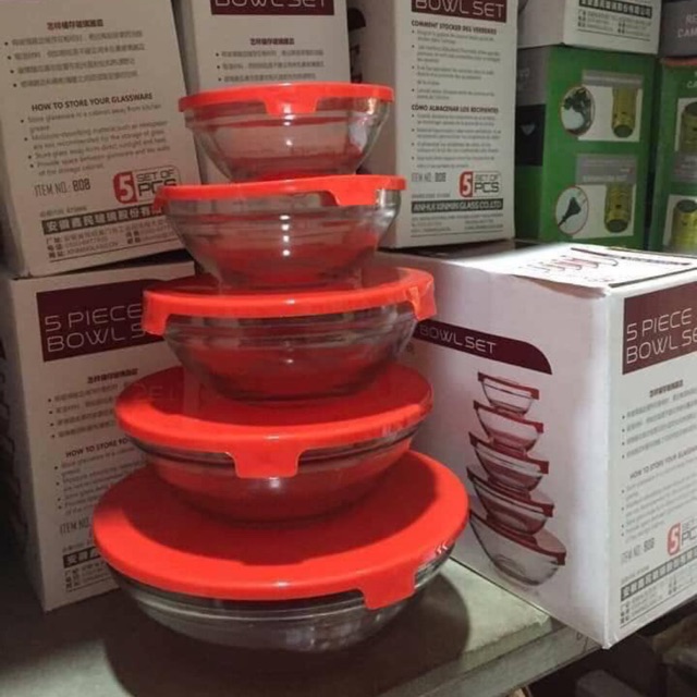 Nhà cửa & Đời sống > Bộ đồ bàn ăn > Tô || Bộ 5 bát thuỷ tinh có nắp đậyCòn hàng