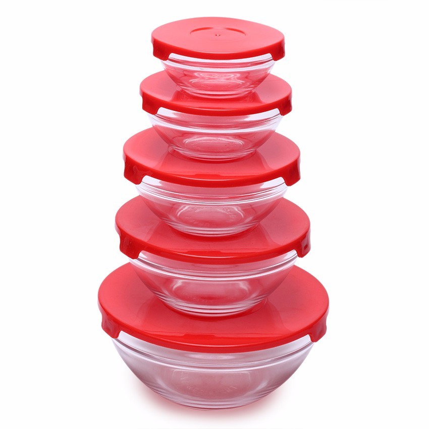Nhà cửa & Đời sống > Bộ đồ bàn ăn > Tô || Bộ 5 Bát Thủy Tinh Có Nắp Đựng Thức Ăn Tủ Lạnh, Sử Dụng Được Lò Vi SóngCòn hàng