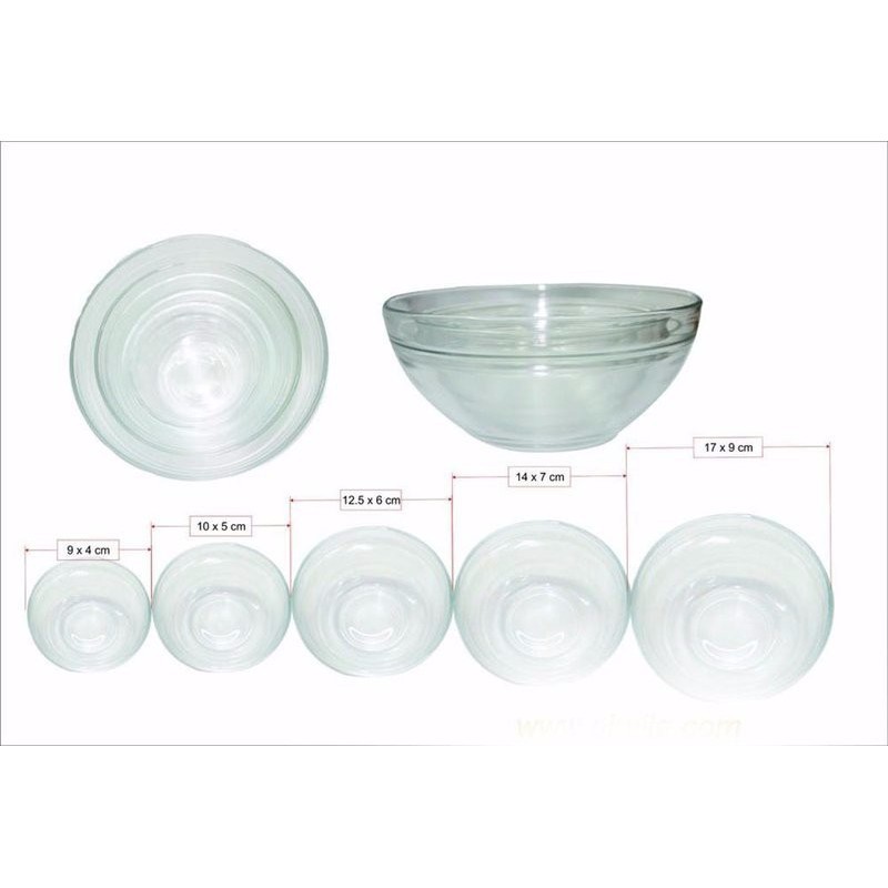 Với bộ bát Thủy tinh gồm 5 chiếc với kích thước khác nhau sẽ giúp bạn trở thành một người nội trợ khéo léo, bày đồ ăn thêm tươi ngon và đẹp mắt hơn! Đặc biệt, chất liệu thủy tinh trong veo càng tôn lên hương sắc tuyệt vời cho từng món ăn mỗi khi được bày ra.