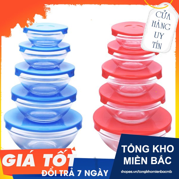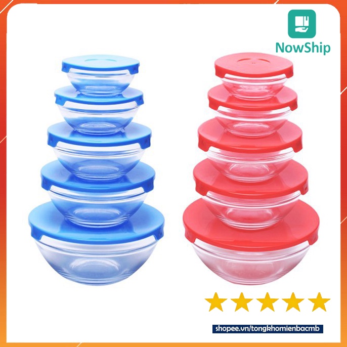 Bộ gồm 5 bát thủy tinh với 5 nắp nhựa tương ứng: