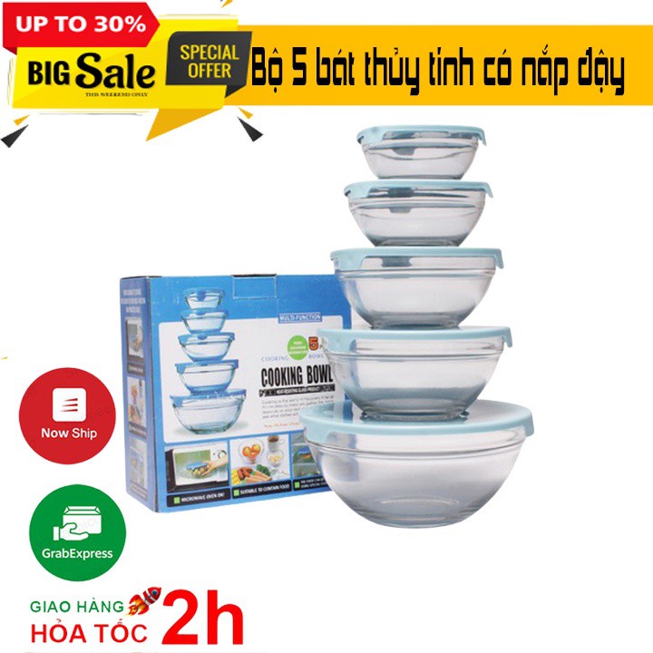 Nhà cửa & Đời sống > Bộ đồ bàn ăn > Tô || Bộ 5 bát thủy tinh đựng thực phẩm có nắp đê tủ lạnh đa năngCòn hàng
