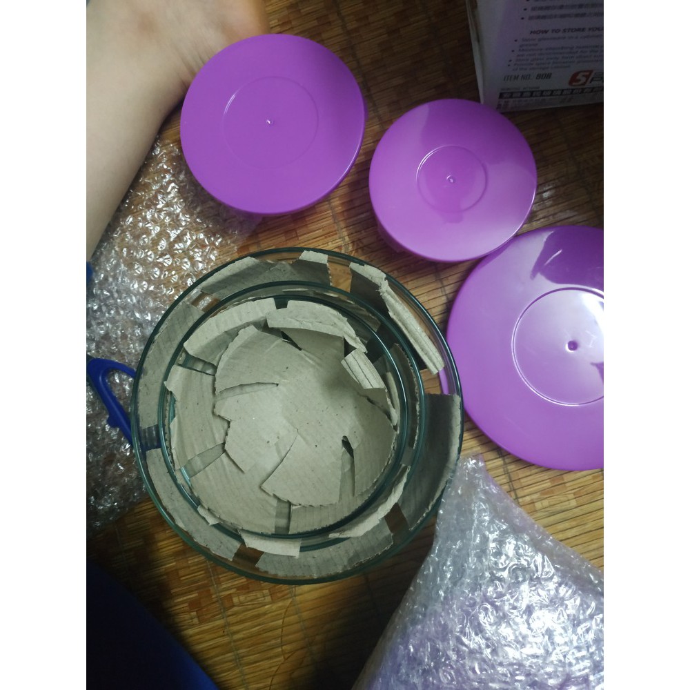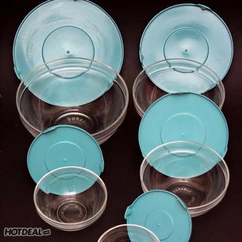 Bộ 5 bát thủy tinh với 5 nắp nhựa tương ứng:
