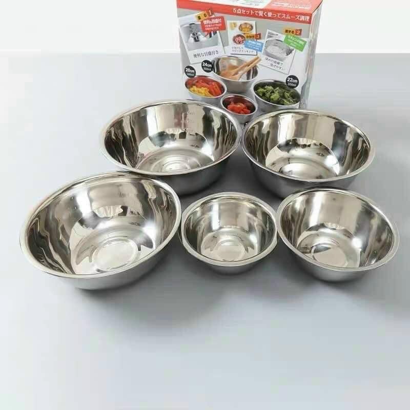 Bộ 5 Bát Trộn, Ấu Trộn Inox Xuất Nhật Tiện Dụng