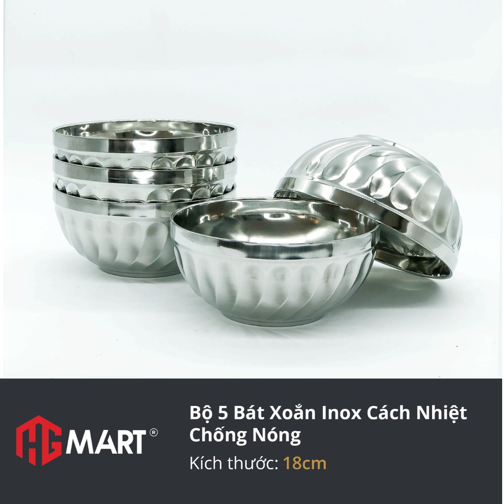 Bộ 5 Bát Xoắn Inox cách nhiệt chống nóng thương hiệu Hoàng Gia