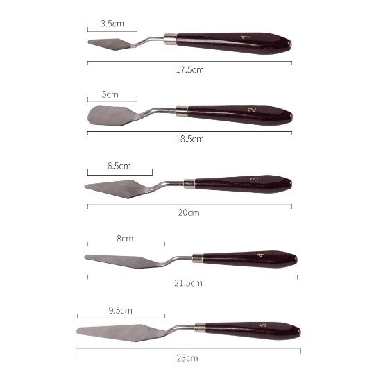 Bộ 5 bay/dụng cụ chà láng bánh kem miniBộ dụng cụ nhỏ gọn, chắc chắn và dễ cầm tay.