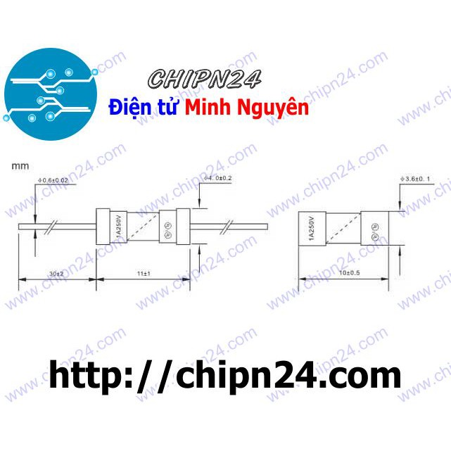 Cầu Chì 3.6x10mm 15A 250V hàn chân cắmTính năng: