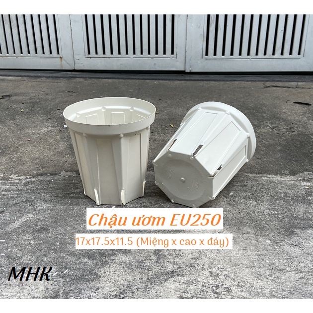 Chậu ươm nhựa mềm màu trắng** EU250 : Kích thước 17x17.5x11.5 ( Miệng x cao x đáy) theo cm