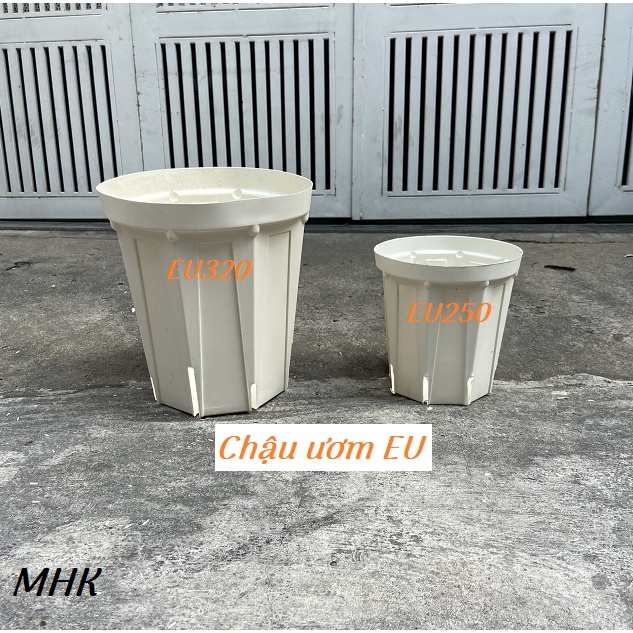 Giới thiệu 5 cái Chậu ươm nhựa mềm màu trắng EU250 . EU320 thoát nước tốt !