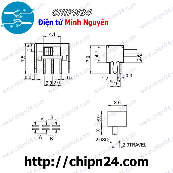 Công tắc gạt 6 chân SK22D07VG4 2P2TCông tắc gạt 6 chân SK22D07VG4 2P2T