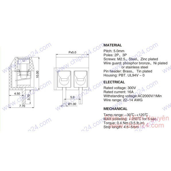 Domino CON2 KF301 2P (5mm)Thông số kỹ thuật: