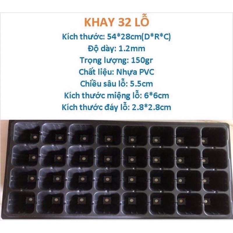 - Khay ươm hạt 32 lỗKích thước lỗ: 6x5.5x2.8 ( miệng x cao x đáy)