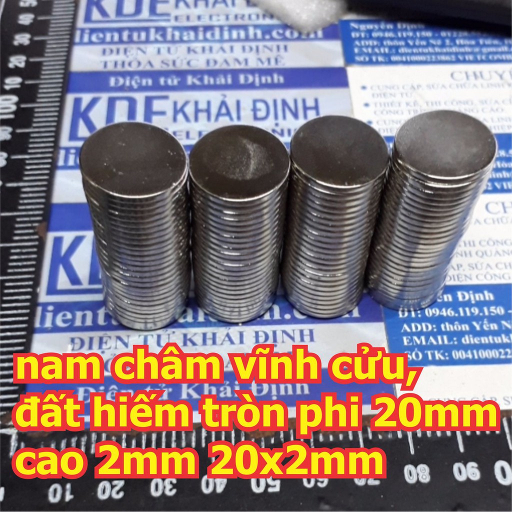 Máy tính & Laptop > Linh Kiện Máy Tính > Khác || 5 cái nam châm vĩnh cửu, nam châm đất hiếm tròn phi 20mm cao 2mm 20x2mm kde5901Còn hàng
