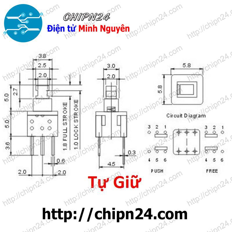 Giới thiệu [5 CÁI] Nút nhấn 6 chân 5.8x5.8mm Tự Giữ