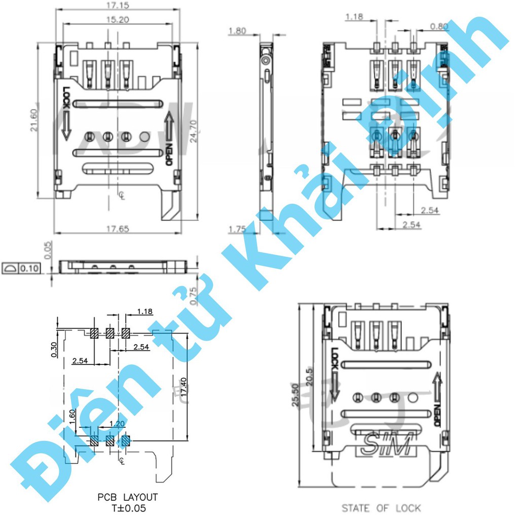 Giới thiệu 5 cái Socket SIM, khay SIM 6P, nắp sắt kde5394