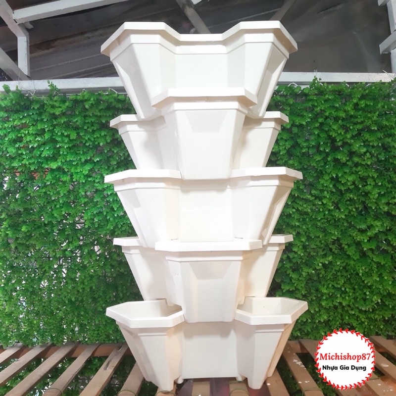 Nhà cửa & Đời sống > Làm vườn > Chậu cây || [Bộ 5 Chậu] Chậu nhựa xếp tầng tháp trồng cây cảnh, trồng hoa, trồng rau củ tiết kiệm không gian- Chậu tam giác xếp tầngCòn hàng