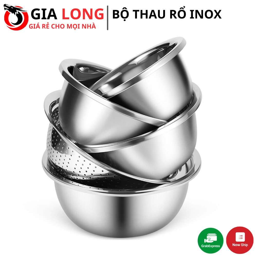 Bộ Thau Rổ Inox Nhà Bếp 5 Món Bằng Inox Đủ Size Từ 18 - 26Cm Tiện Dụng, Dày Dặn- Bộ 5 thau rổ inox là bộ sản phẩm cực kì hữu dụng và thiết thực cho công đoạn sơ chế thức ăn hàng ngày của bất kì gia đình nào. Sản phẩm không chứa chất gây hại cho sức khỏe người dùng, an toàn...