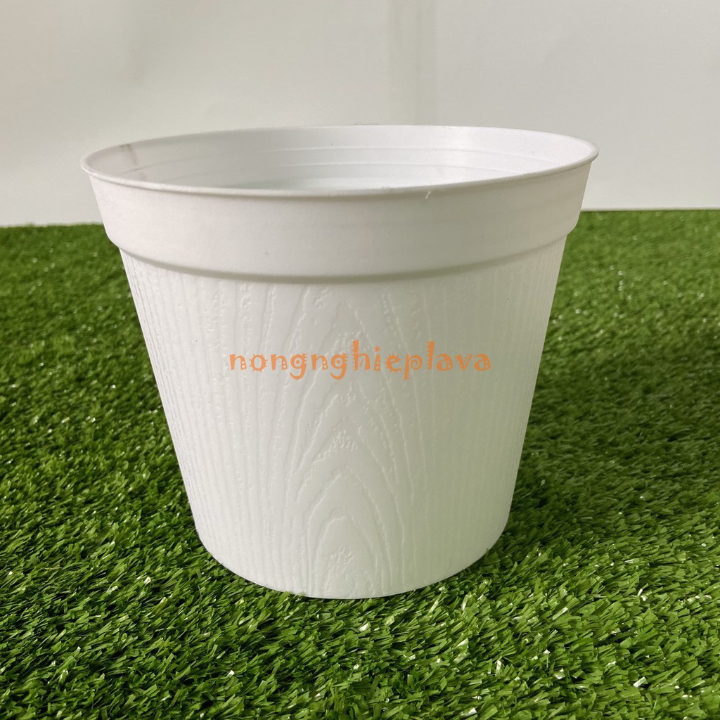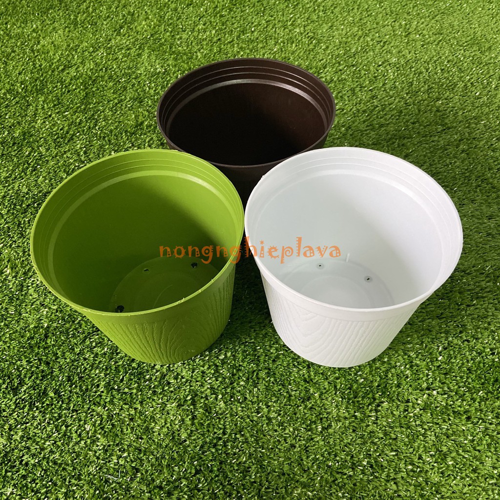 Chậu Nhựa Vân GỗDùng trồng các loại cây cao từ 20-50 cm,, chậu thiết kế đơn giản, thuận tiện khi di chuyển cây chậu hoặc thay đất,