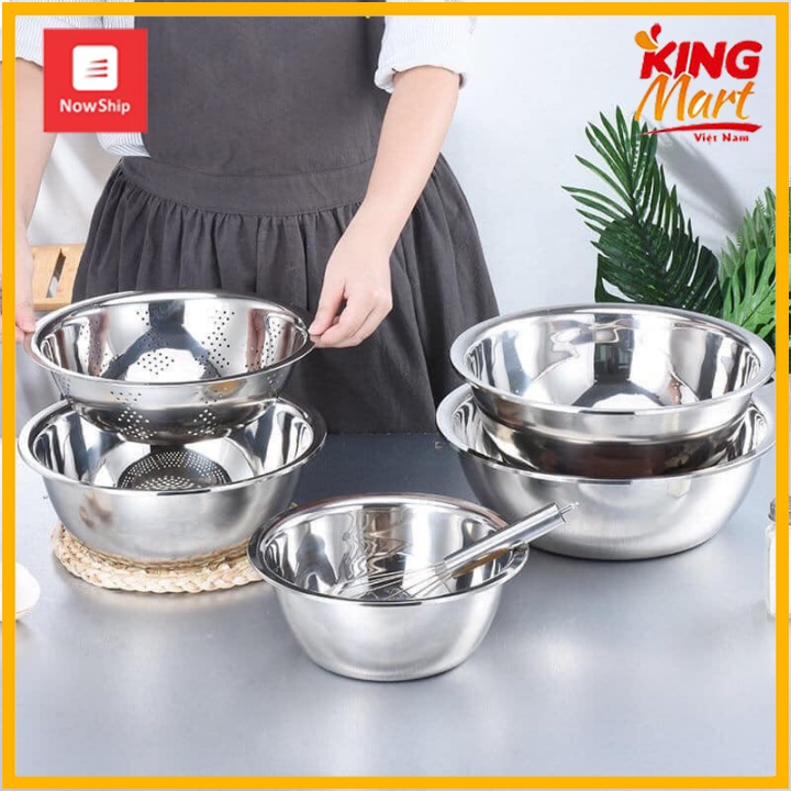 Bộ 5 chậu rửa inox cao cấp-Rổ chậu rửa hoa quả inox(Kingmart68)