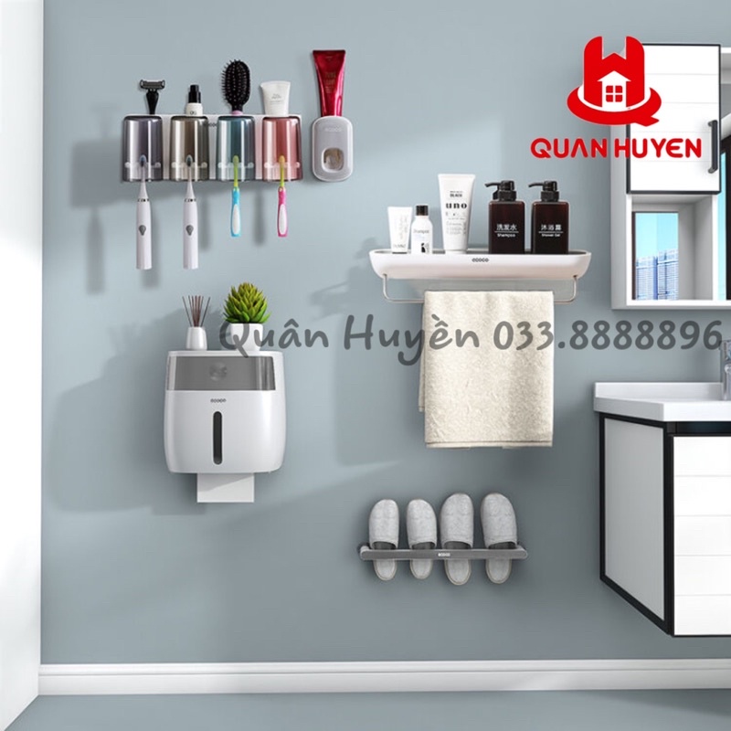 Bộ 5 chi tiết Ecoco | Kệ để đồ có thanh treo khăn, bộ kệ cài bàn chải 2,3 cốc, hộp giấy vệ sinh 2in1, nhả kem đánh răng, kệ treo dép dài không khoan tường mẫu mớiĐể phục vụ nhu cầu cho khách thích sử dụng đồng màu, Shop bán từng combo đồng màu, giá tốt hơn so với mua rời đó ạ.
