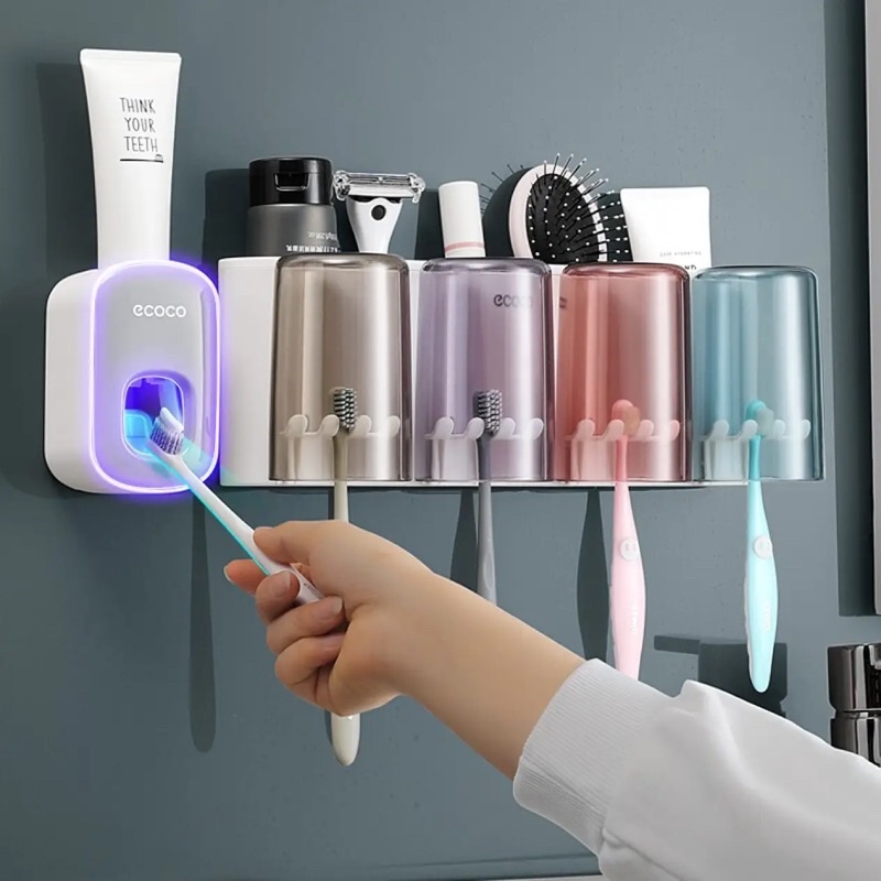 Nhà cửa & Đời sống > Đồ dùng phòng tắm > Kệ đựng bàn chải, kệ nhả kem đánh răng || Bộ 5 chi tiết Ecoco | Kệ để đồ, bộ cài bàn chải, hộp giấy vệ sinh 2in1, nhả kem, kệ treo dép không khoan tường mẫu mớiCòn hàng