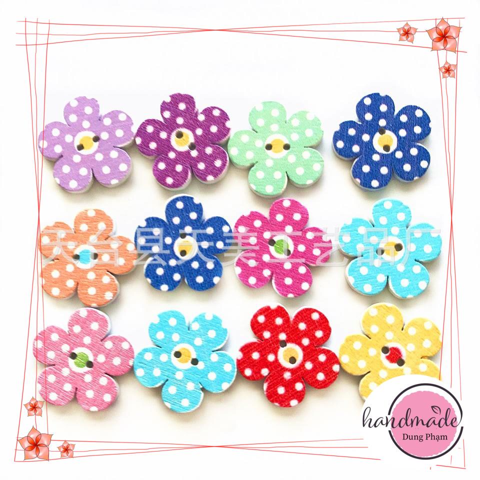 Giới thiệu [ 5 chiếc - 2cm ] Cúc Gỗ Handmade - Nút Handmade trang trí scrapbook, cúc áo