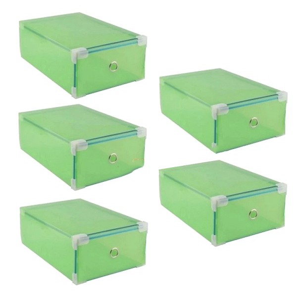 Bộ 5 Chiếc Hộp Đựng Giày Nhựa Trong Suốt Viền Kim Loại Có Ngăn Kéo