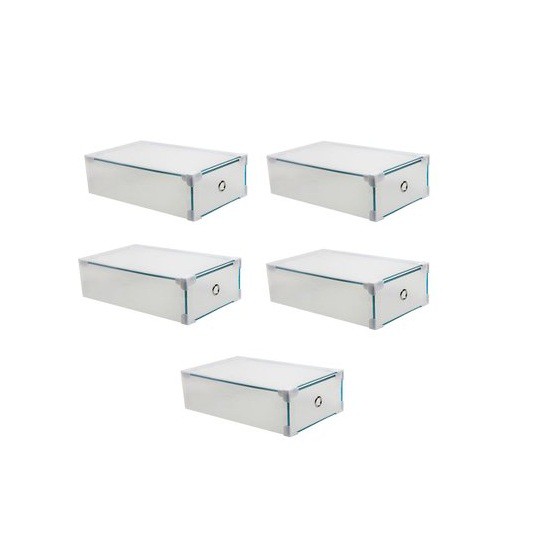 Giới thiệu Bộ 5 Chiếc Hộp Đựng Giày Nhựa Trong Suốt Viền Kim Loại Có Ngăn Kéo