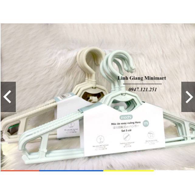 - Móc áo xoay vuông Inochi Hara 175 bộ 5 chiếc được làm từ chất liệu nhựa PP nguyên sinh cao cấp, với độ chịu lực tốt, bền đẹp theo thời gian sử dụng.