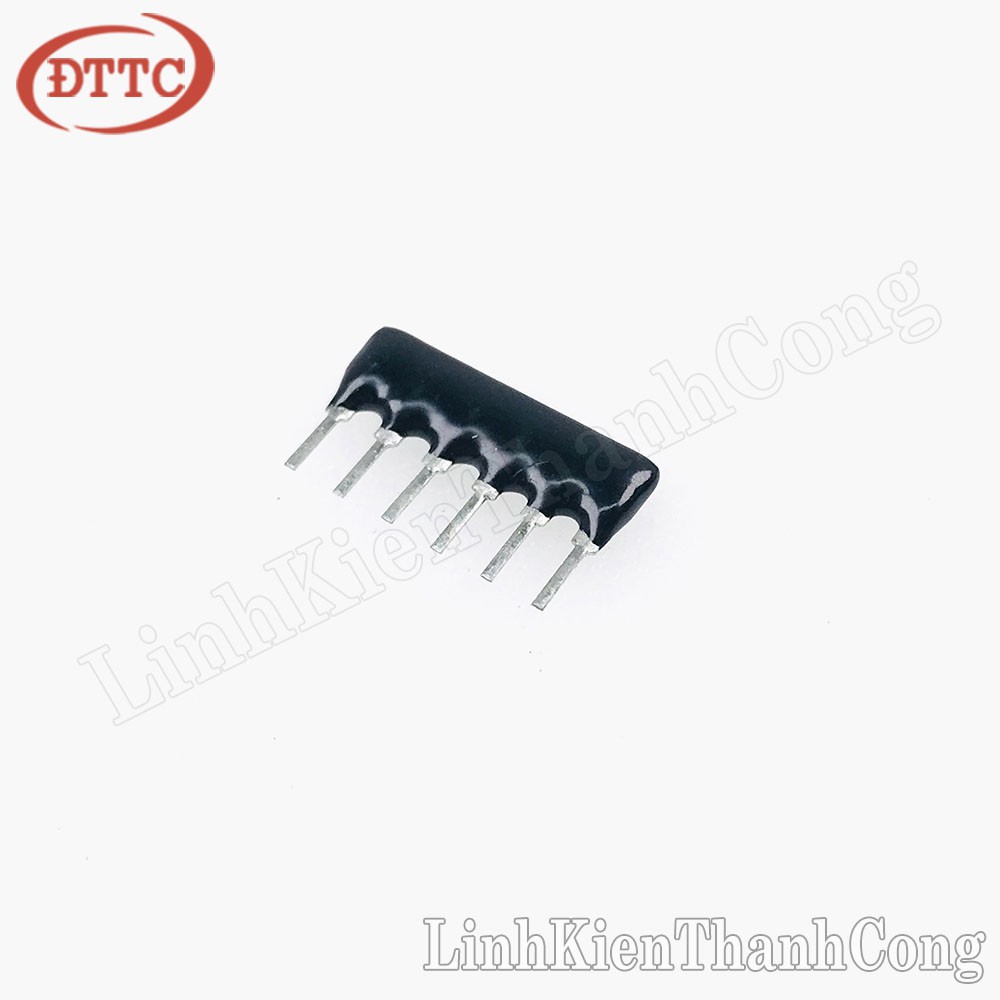 - Điện trở băng 10K Ohm 6 chân là một mạng điện trở, gồm 6 điện trở có cùng giá trị 10K Ohm được kết nối với nhau. Điện trở băng 10K Ohm có một chân chung, các chân còn lại nối với chân chung qua 1 điện trở, giá trị điện trở đó thường được ghi trên thân.