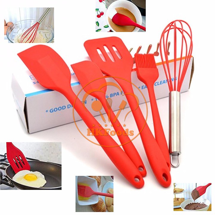 Chất liệu: Silicone đúc theo tiêu chuẩn FDABộ dụng cụ gồm 5 món cơ bản: