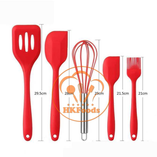 Nhà cửa & Đời sống > Dụng cụ nhà bếp > Cây vét bột & đồ gắp thức ăn || Bộ 5 chổi phới spatula đỏ siliconCòn hàng