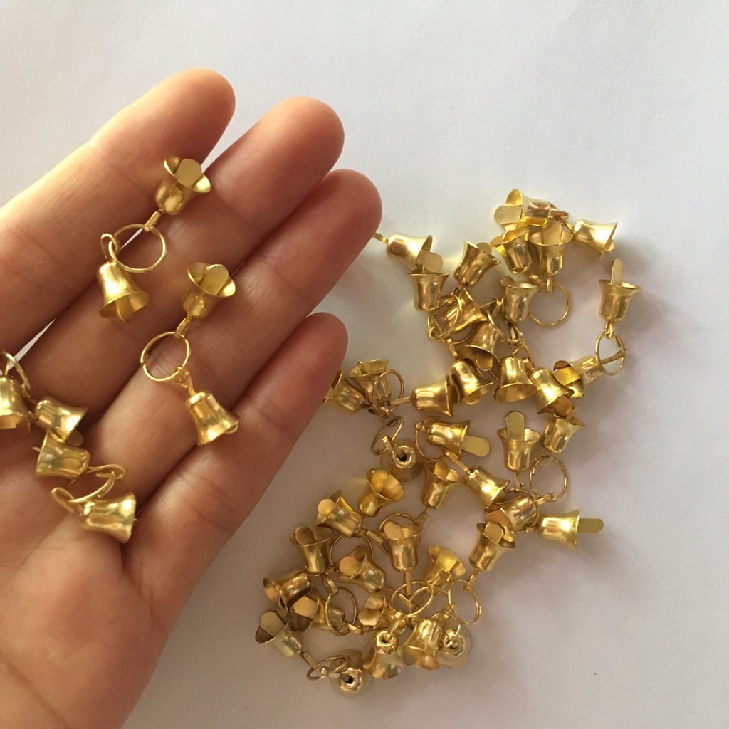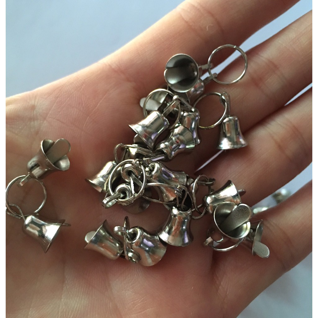 MỖI CHUÔNG ĐÔI gồm 1 khoen đã treo sẵn 2 chuông (có thể tháo chuông ra khỏi khoen).Giá bán: 11.500đ/ 5 chuông mô tả như trên (tức là 5 khoen tròn và 10 chuông nhỏ).