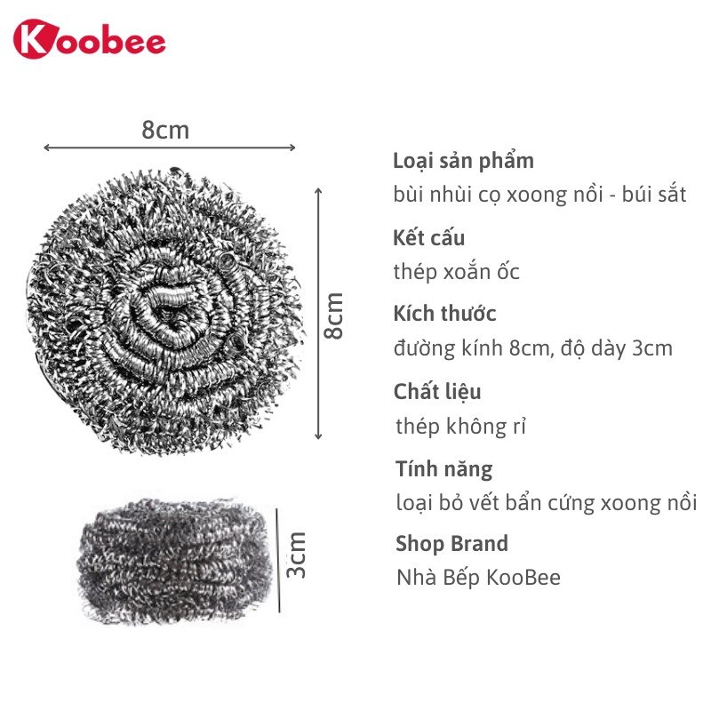 - Búi sắt cọ rửa loại bỏ vết bẩn cứng đầu dễ dàng, nhanh chóng tẩy rửa.