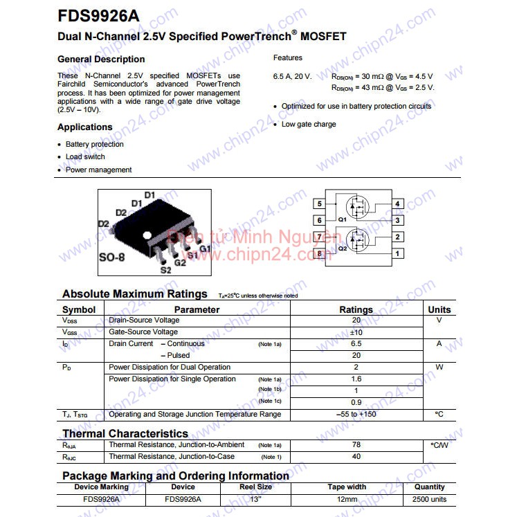 https://www.mouser.com/ds/2/149/FDS9926A-888947.pdf
