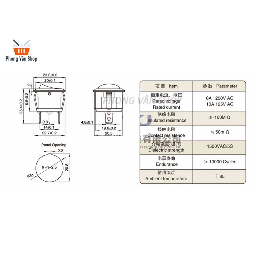 Công tắc bập bênh tròn đen - ON-ON - 3 chânKích thước công tắc có trên hình ảnh sản phẩm