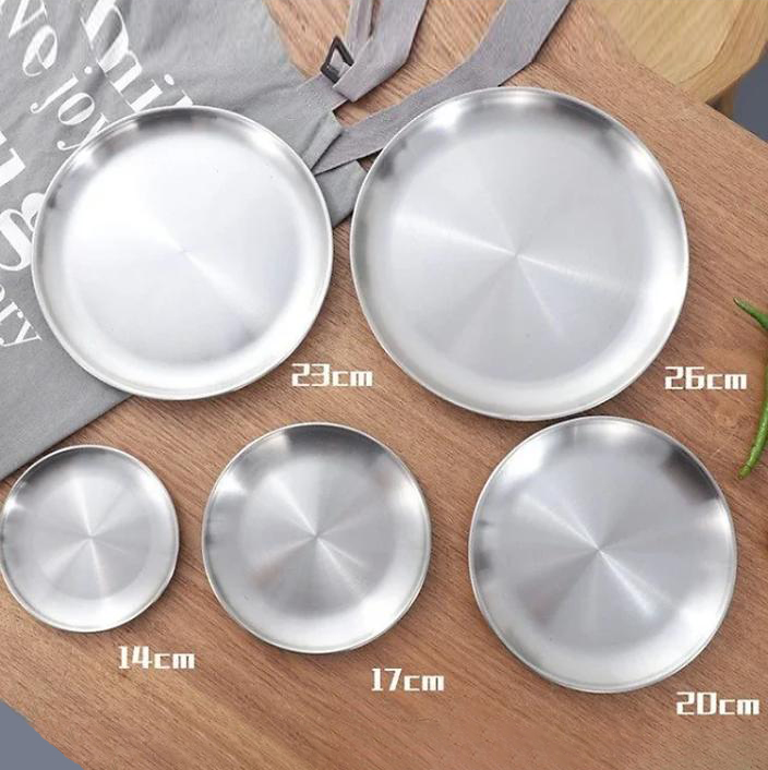 Đĩa inox tròn thiết kế theo phong cách Hàn Quốc đơn giản, sang trọng. Bộ sản phẩm đĩa inox hàng nhập khẩu cao cấp, bền đẹp, dễ dàng vệ sinh, lưu trữ gọn gàng. Khay inox Hàn Quốc có thể sử dụng để đựng các loại thức ăn, đồ tráng miệng, đồ xào, đồ nướng, các loại bánh, trái cây hoa quả, làm khay trà hoặc bạn có thể thoài mái bày trí theo sở thích và mục đích sử dụng.