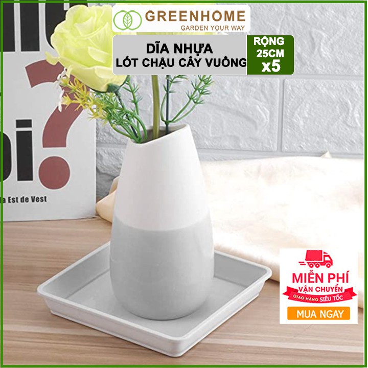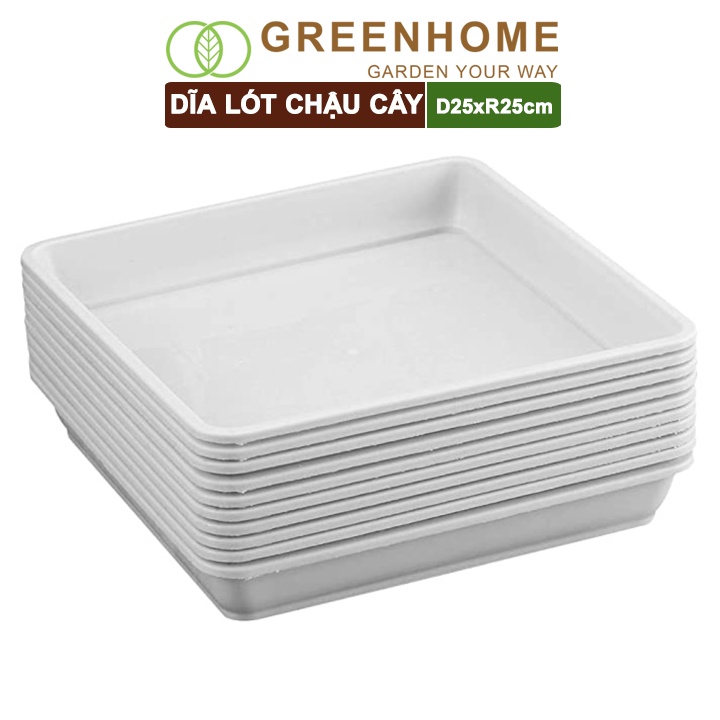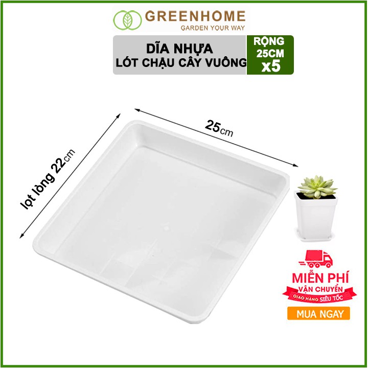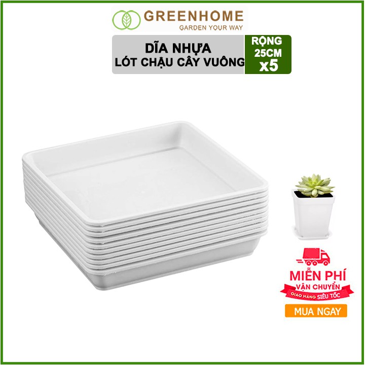 Nhà cửa & Đời sống > Làm vườn > Chậu cây || Bộ 5 Dĩa lót chậu cây, D25xR25cm, hình vuông, nhựa nguyên sinh, bền, đẹp | GreenhomeCòn hàng