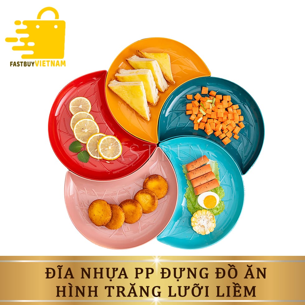 Nhà cửa & Đời sống > Bộ đồ bàn ăn > Tô || Bộ 5 đĩa nhựa bán nguyệt nhiều màu để đồ ăn, trái câyCòn hàng