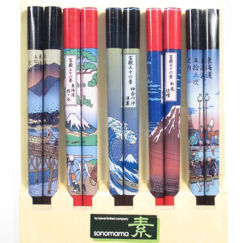 Bộ 5 đôi đũa họa tiết tranh sơn thủy Nội địa Nhật Bản
