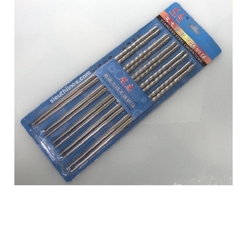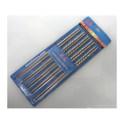 Giới thiệu sản phẩm Bộ 5 đôi đũa inox - FN119Đũa với chất liệu inox sẽ làm bàn ăn nhà bạn trở nên sang trọng hơn. Phần thân trên thiết kế dạng xoắn giúp người dùng cầm dễ dàng, thân dưới có nhiều đường khắc vòng quanh đũ, giúp thức ăn không bị trơn tuột.