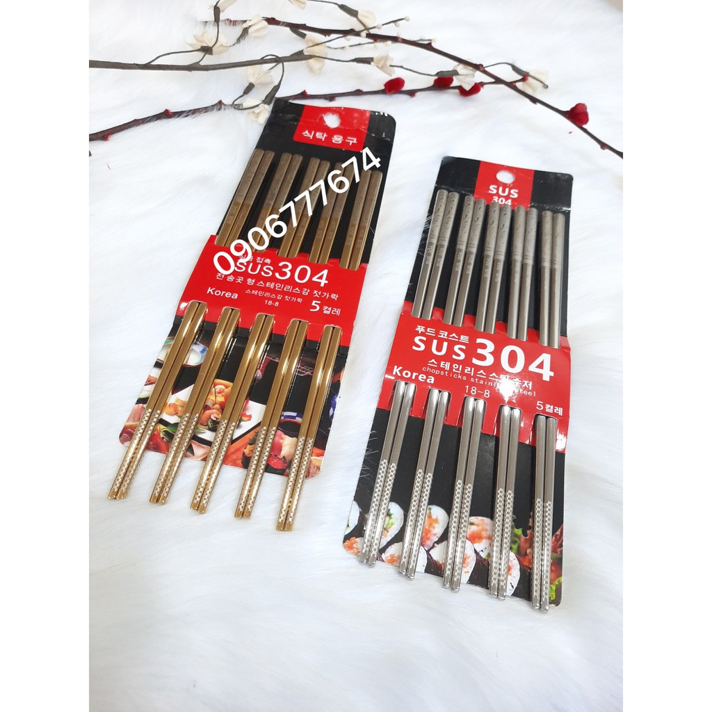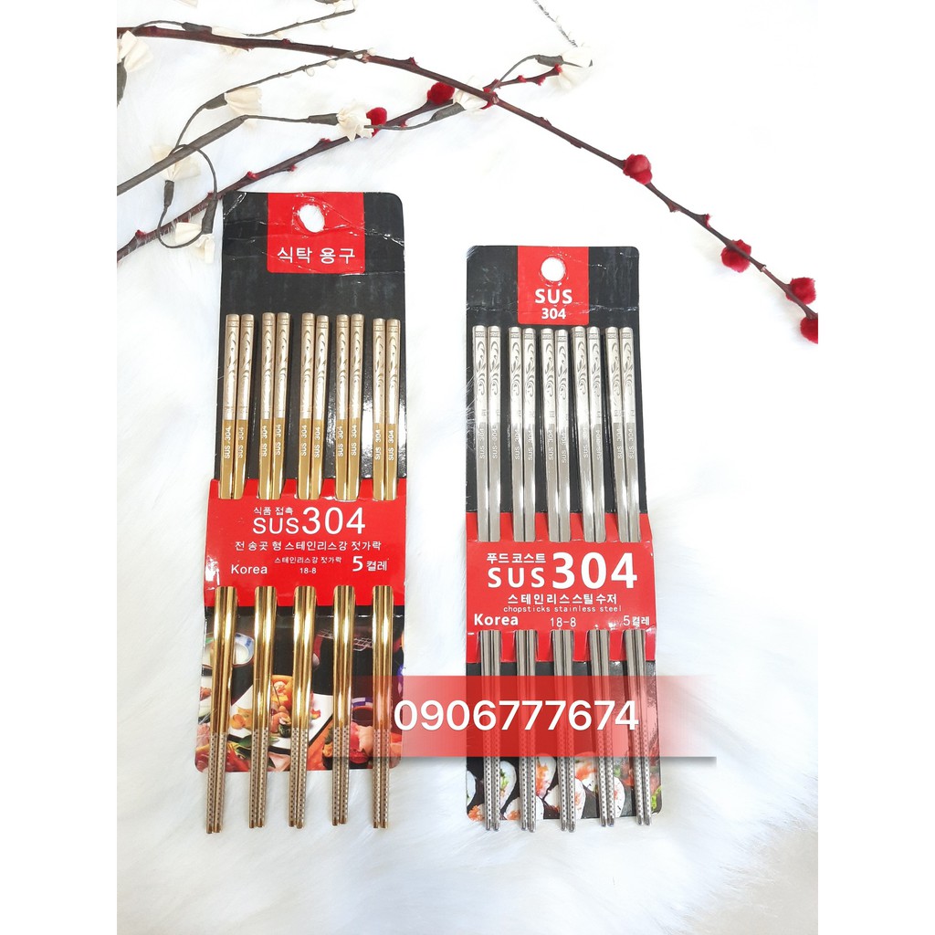 Bộ 5 đôi Đũa inox SUS 304 Hàn Quốc chuẩn HÀNG LOẠI 1